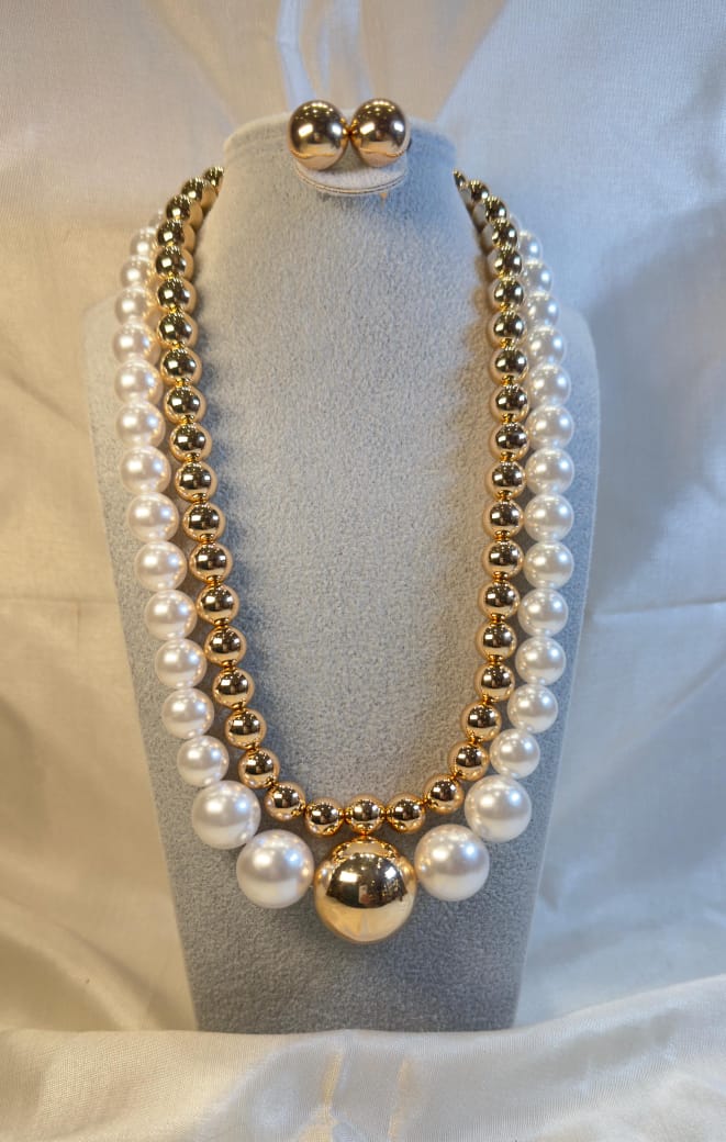 Elevate your jewelry collection with this sophisticated gold-plated layered necklace, featuring lustrous white pearls that add timeless elegance to any ensemble. The multi-strand design creates dimensional depth while maintaining a refined aesthetic. Complemented by a coordinating earring set, this complete jewelry pairing offers versatility for both everyday wear and special occasions. The gold plating provides a warm, luxurious finish that enhances the pearl's natural radiance. Perfect for those who appreciate classic jewelry with contemporary styling.